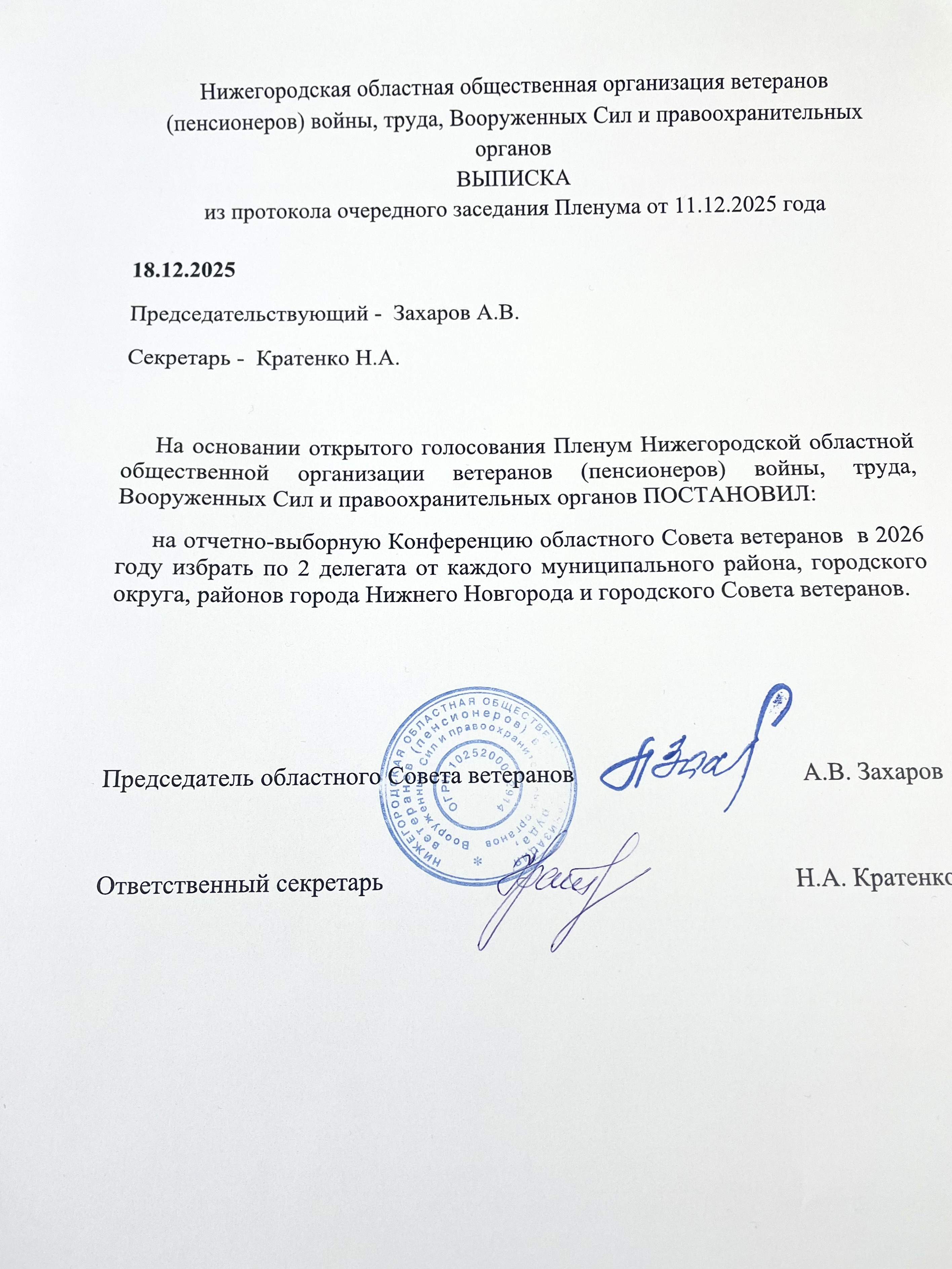 Выписка из Протокола по избранию делегатов на отчетно- выборную Конференцию.